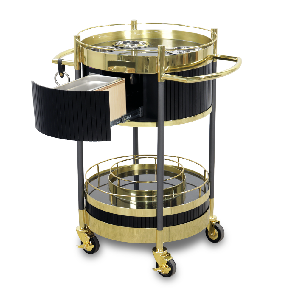 In summary, the Circa Bar Cart is a unique mixology cart that is designed to provide mixologists with a sturdy and durable work area while also adding a touch of elegance to your establishment. With its built-in mixology tool storage, temperature control, and ample storage space, the Circa Bar Cart is the perfect addition to any dining service. The Circa Bar Cart is a high-quality drink cart that is also a portable mixology cart. It is a high-end mixology cart that is perfect for creating unique and personal drink experiences.