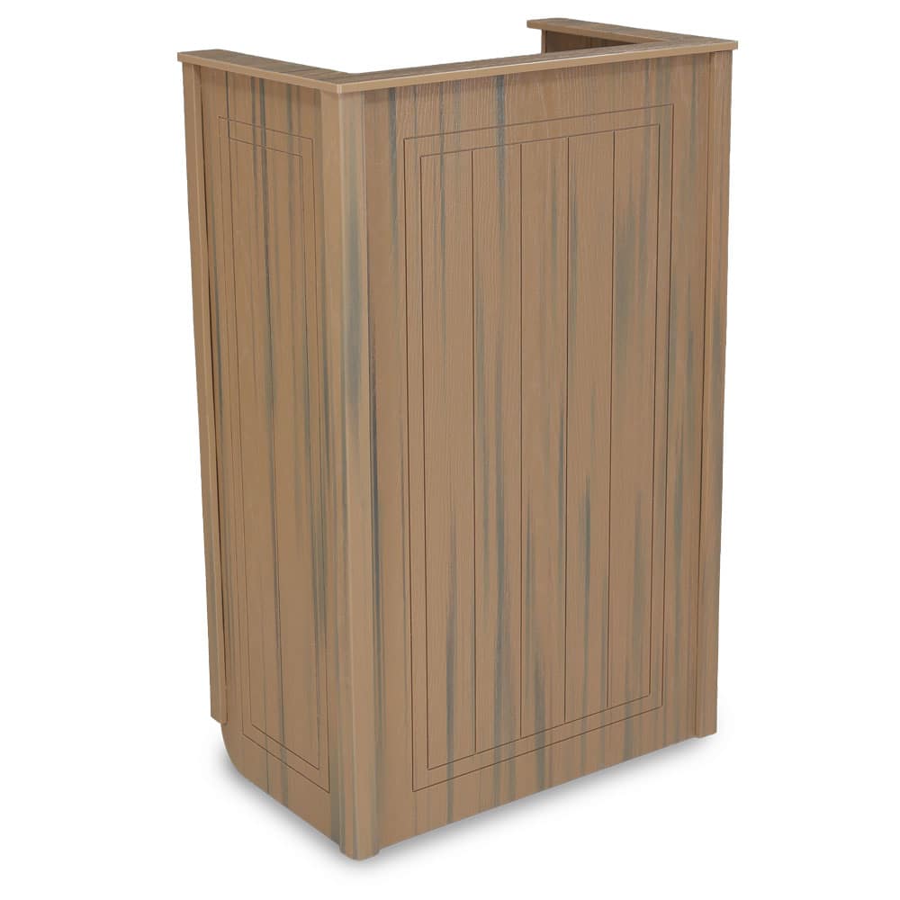 - Woodgrain HDPE cabinet and U-shaped countertop